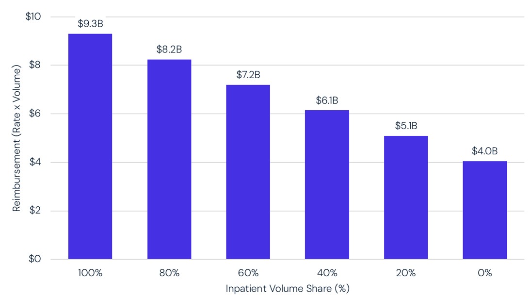 Another major takeaway from the analysis: For every 20% shift in volume from inpatient to outpatient, hospital reimbursement drops by over $1 billion.